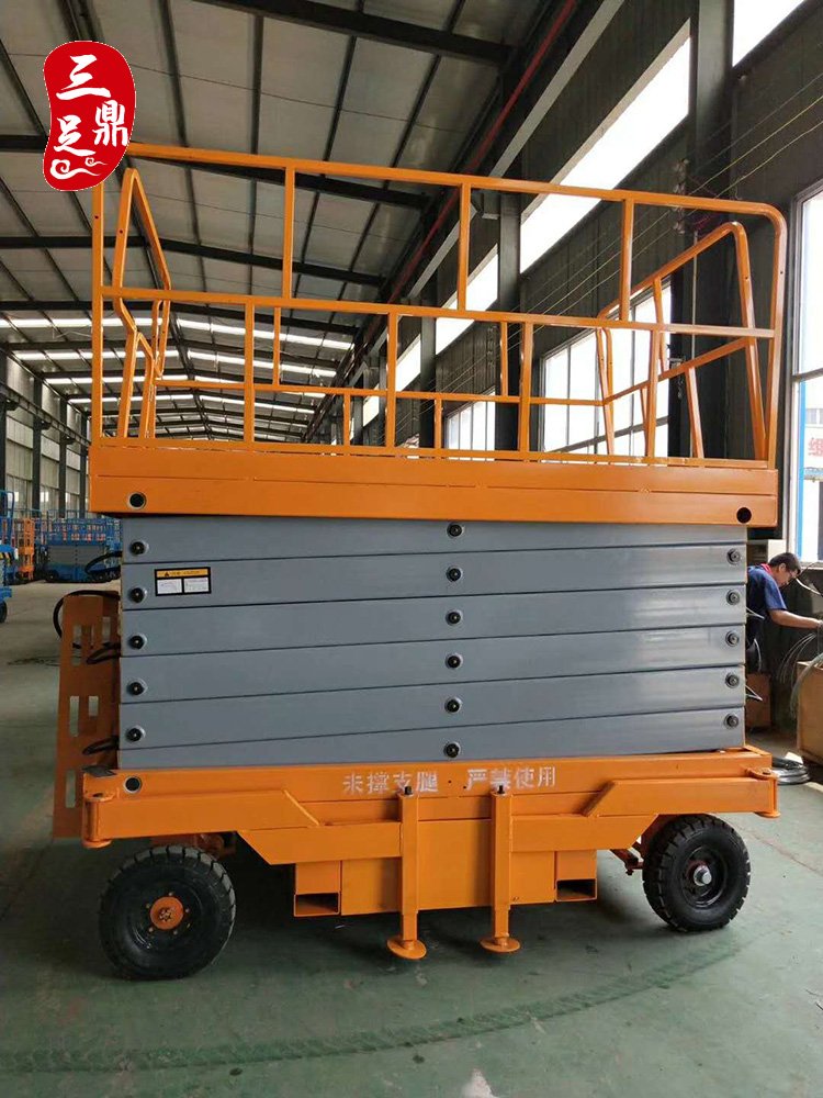 辅助行走移动升降机12米载重500 kg,就是在常规移动的基础加上4块电瓶,用于在电源不方便接通的情况下使用,可以靠电瓶升降,行走,一人握住前边的控制饼就可以,也可根据客户要求定做,详情请咨询客服。