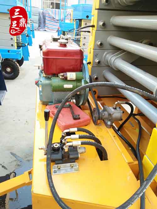 柴油机升降平台采用外来动力作牵引,利用三相电源或柴油机做动力,两用或遥控器控制.并且该产品配有停电保护系统,当意外停电时自动激活自我保护装置系统,升降机停留原位置,可以利用手动,三相电源或柴油。