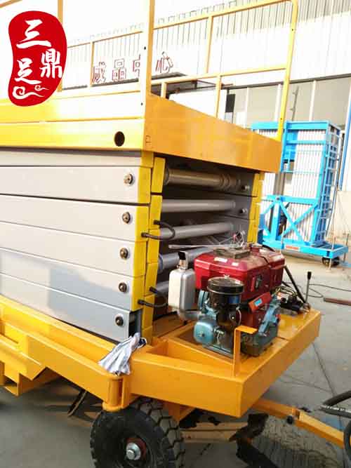 柴油机动力移动式升降机是由升降机和柴油机配套改装而成的高空作业设备。它利用柴油内燃机原有动移动升降机的上升及下降。它移动方便作业流动,产品作业范围大。