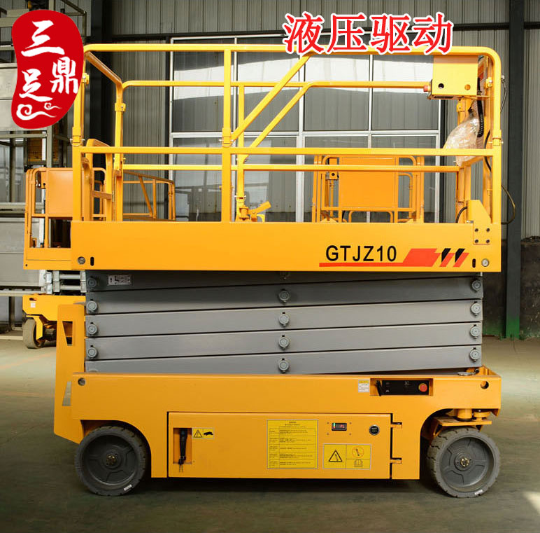 剪叉自行式高空作业平台,它具有自动行走的功能,能够在不同工作状态下,快、慢速行走,一个人在高空作业时可操作机器连续完成升降、前进、后退、转向等动作,较传统的液压平台增加了工作效率,减少操作人员数量。适合于机场候机楼、车站、码头、商场、体育场馆、小区物业、厂矿车间等较大范围的高空连续作业。